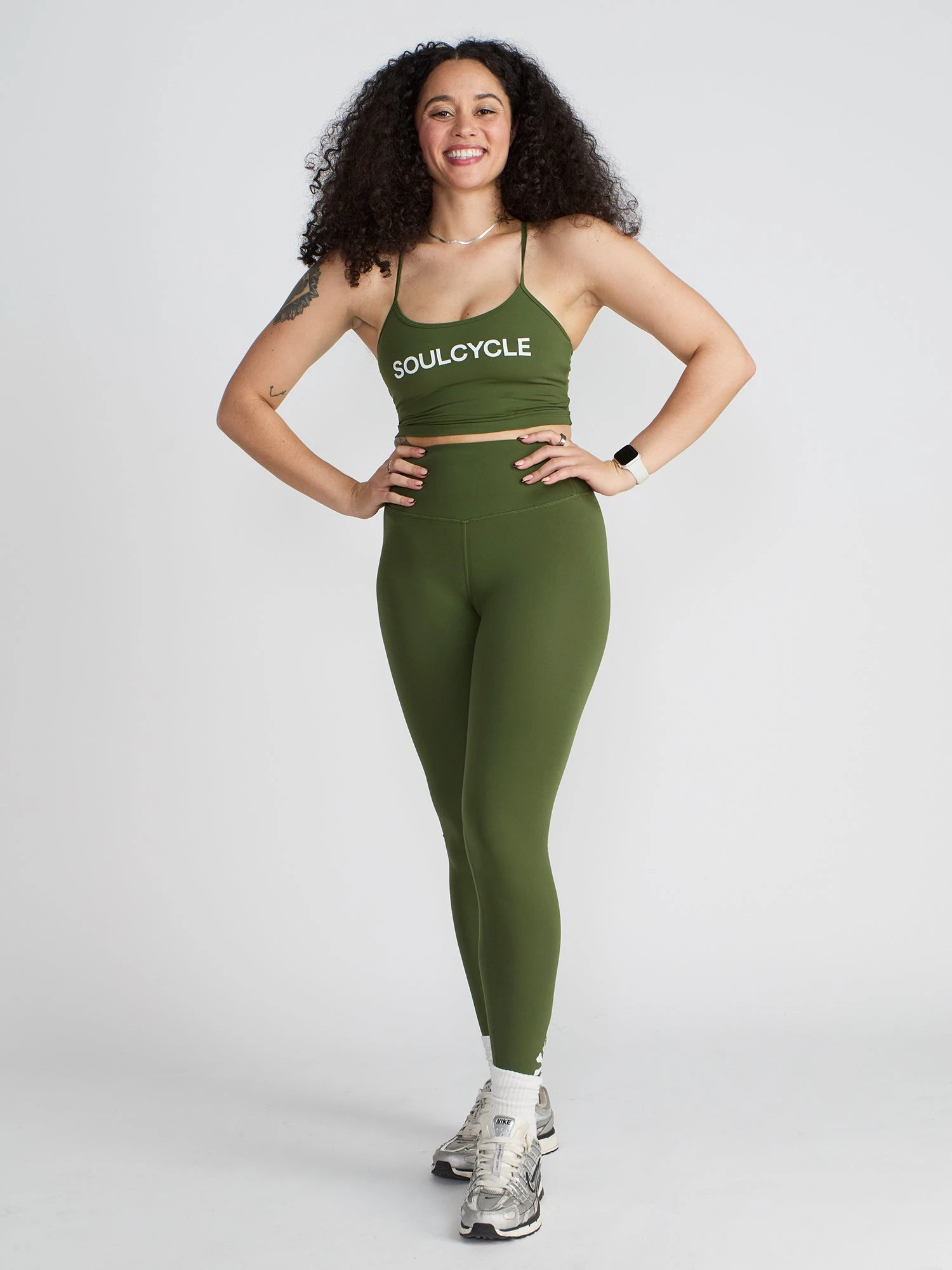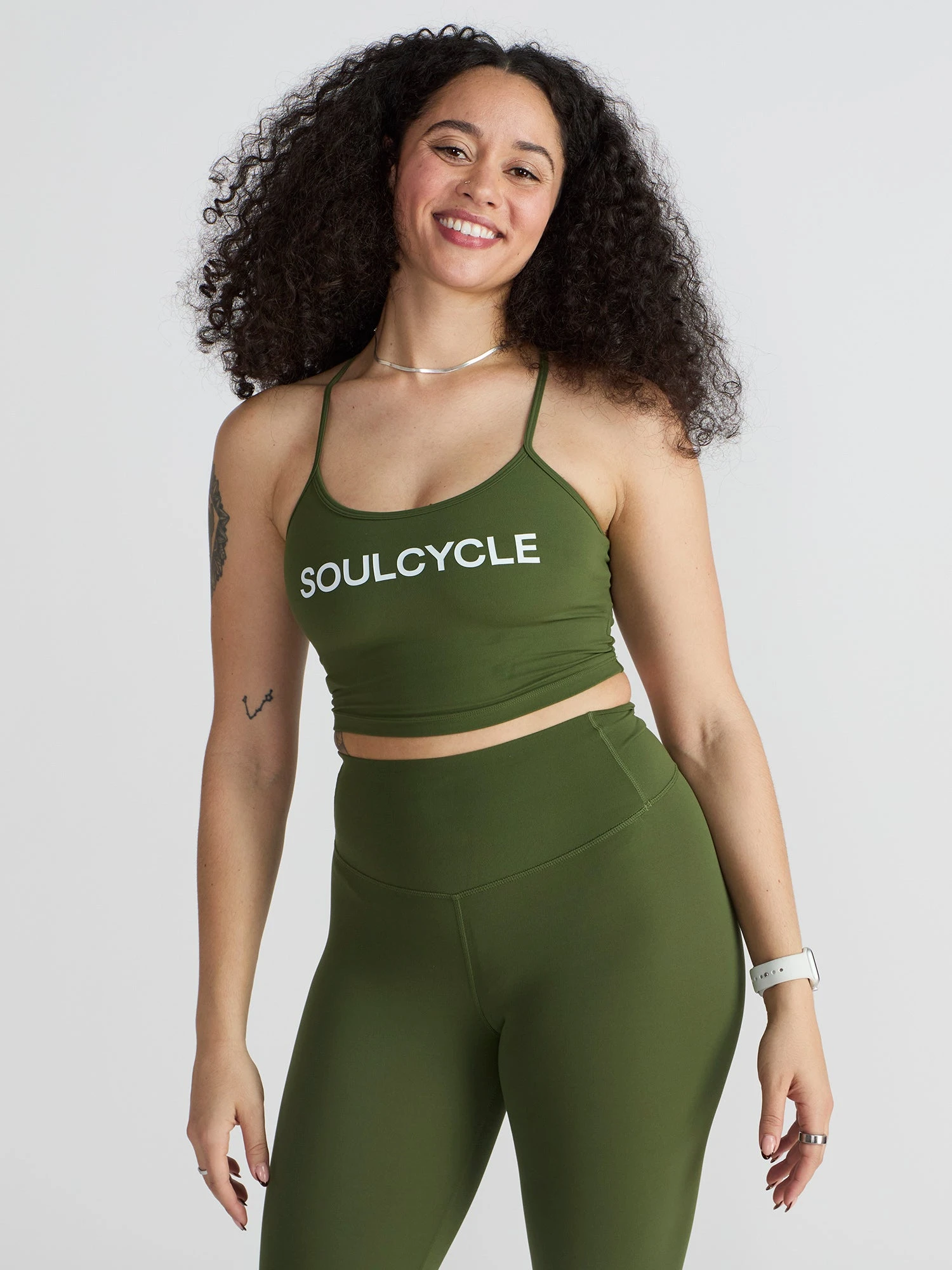 Workout in style in this versatile, lighter-than-air, buttery-soft tank. Designed with a cropped, racerback fit, an interior built-in bra with medium support, and a flattering scoopneck for distraction free workouts. Features “SOULCYCLE” in white across chest.