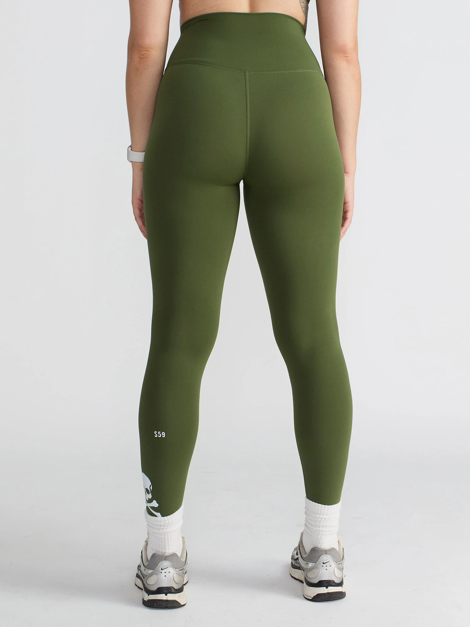 Clip in with these buttery-soft, high-waisted and lightweight leggings that fit like a second skin. Features a white skull on the right calf.