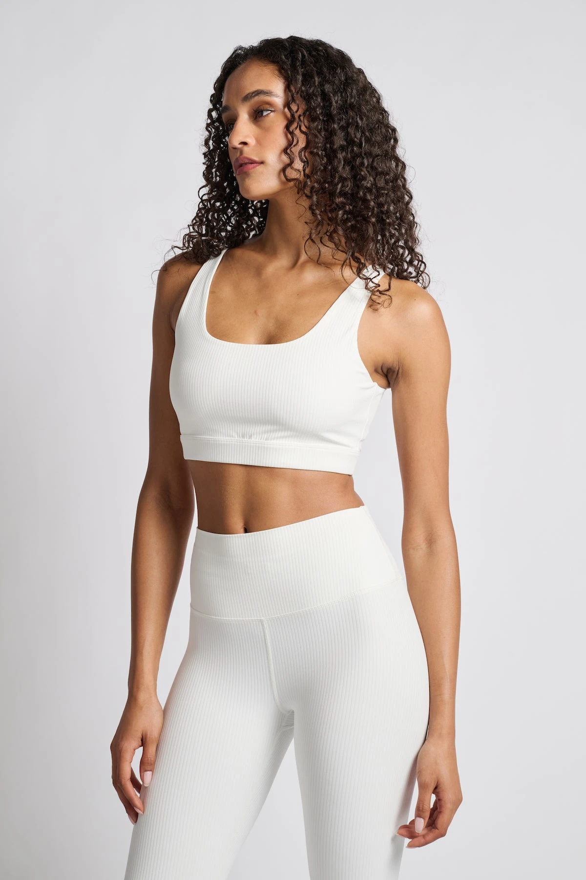 Made from ribbed Airweight fabric, this super supportive top features a scoop neckline and moisture-wicking technology. Pair it with the matching Airweight Rib High Waist 7/8 Legging for a complete look.