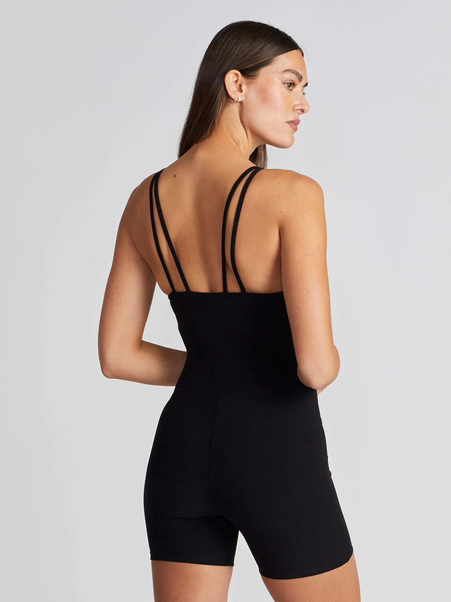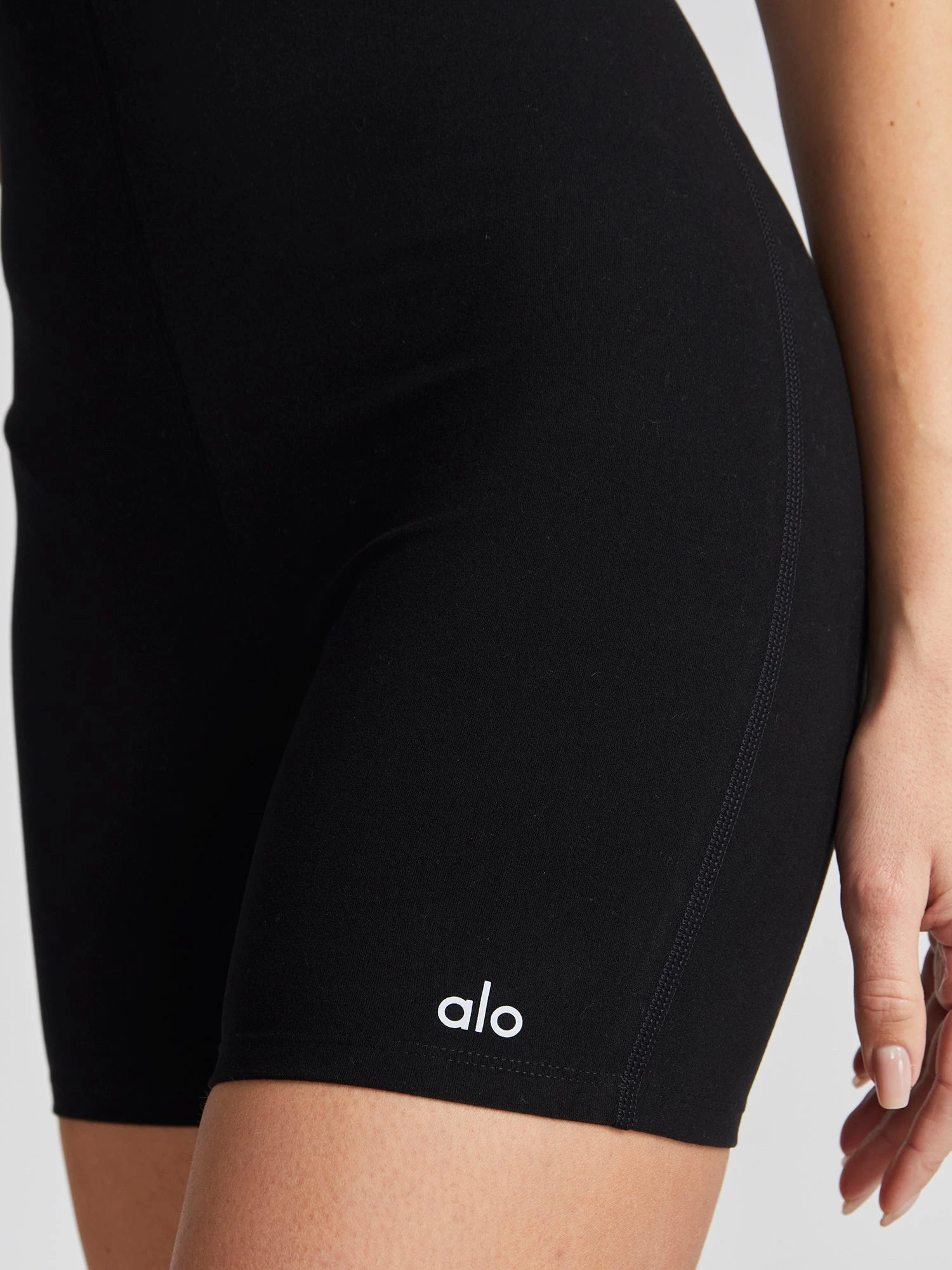 This V-neck one-piece features double straps and a just-right 5-inch inseam. Made from ultra-soft, stretchy Alosoft fabric with a brushed finish for a flattering, body-contouring fit. Complete with a built-in bra and removable cups for customizable support.
