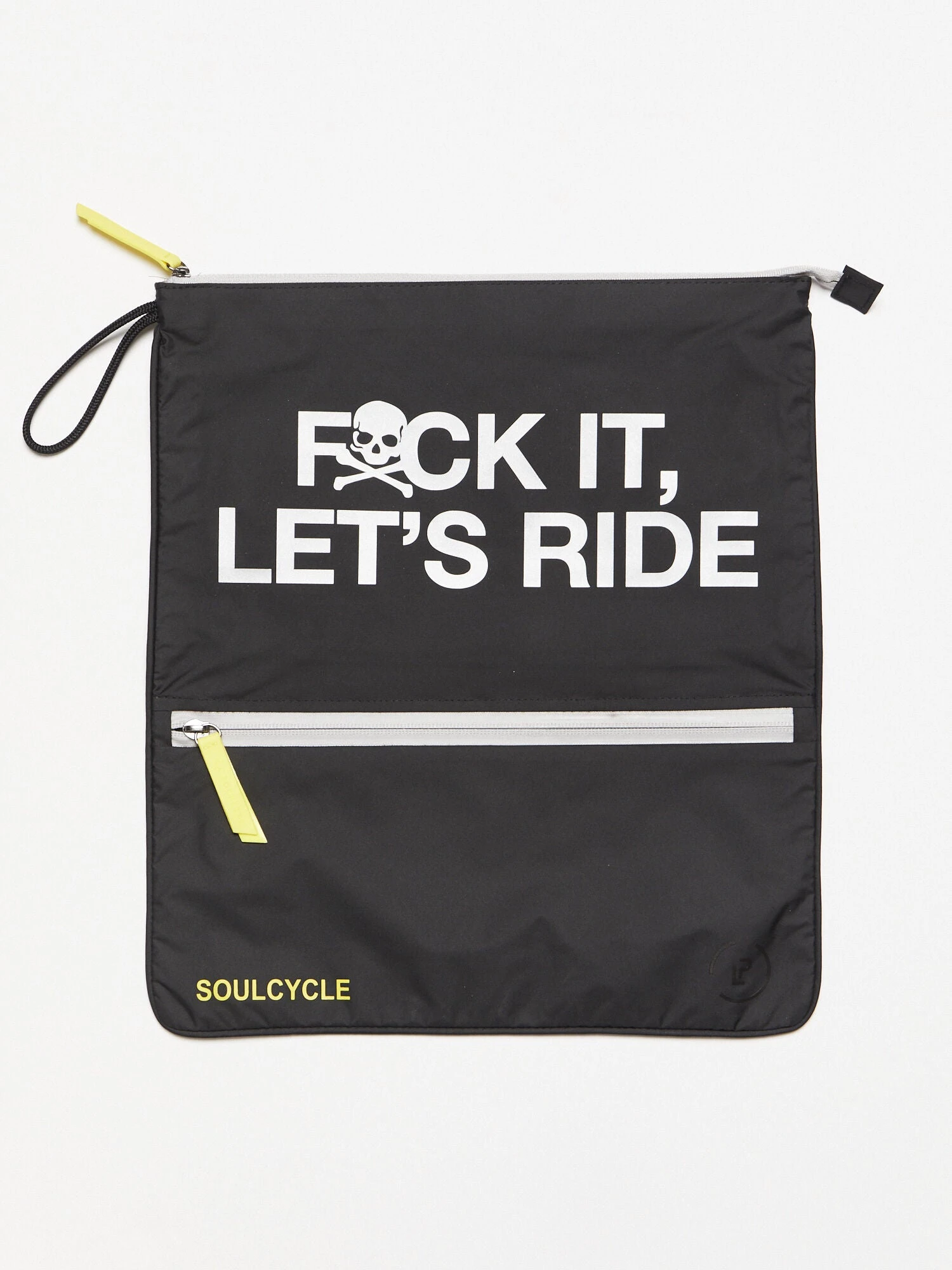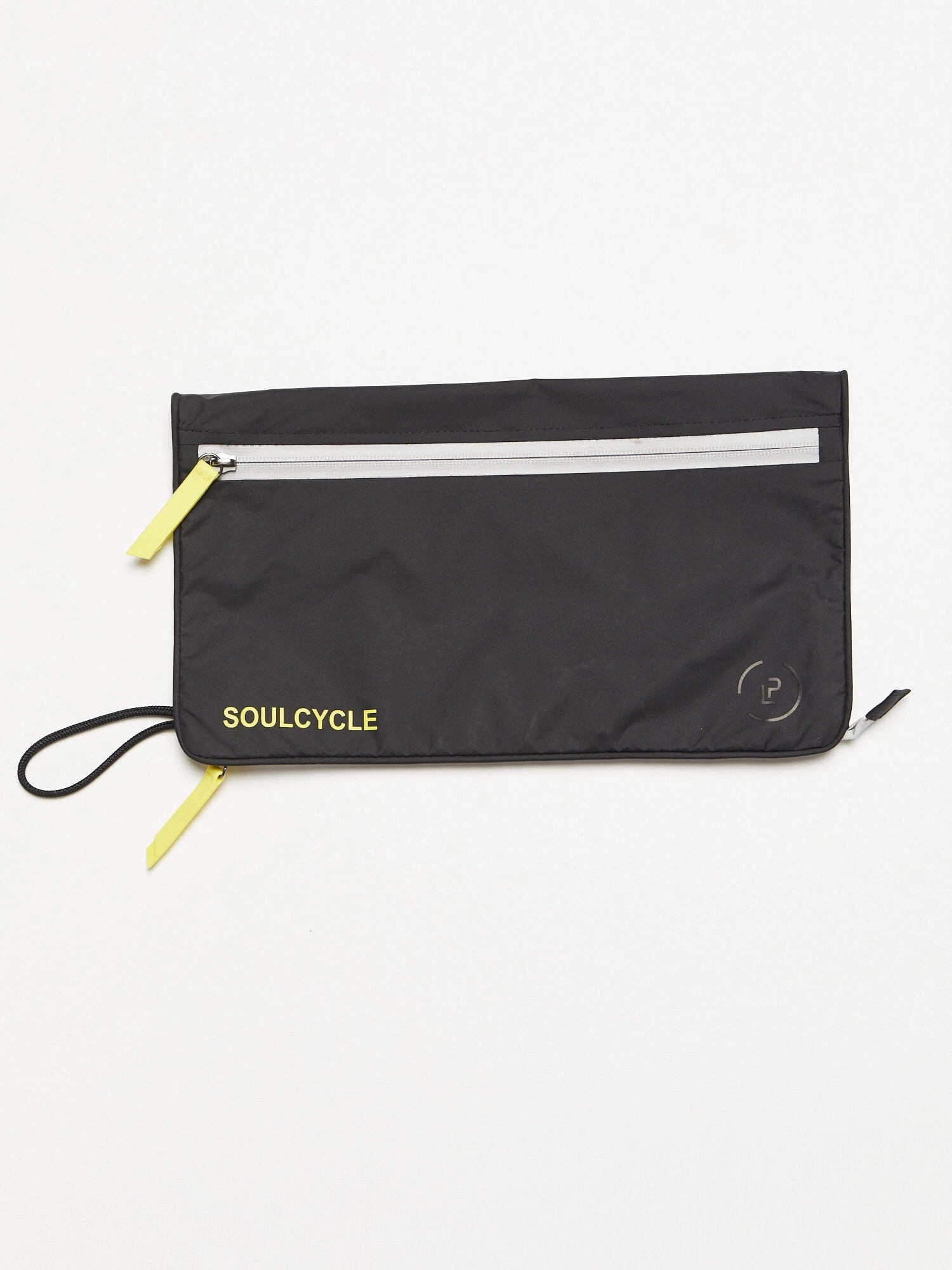 Made from recycled plastic bottles, this SoulCycle x La Pochette exclusive sweat bag is lightweight, water resistant, stain resistant, deodorising, and offers antibacterial protection. Dimensions: 13″ x 14″.