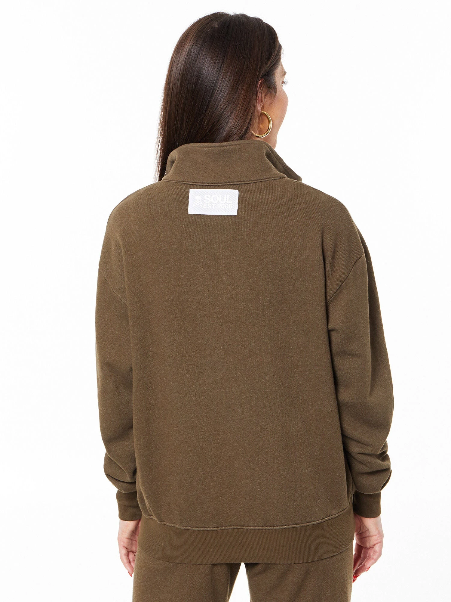This collared, quarter-zip sweatshirt is perfect for throwing on after class or living in all weekend. Features “SOUL EST. 2006” on patch on back of neck.