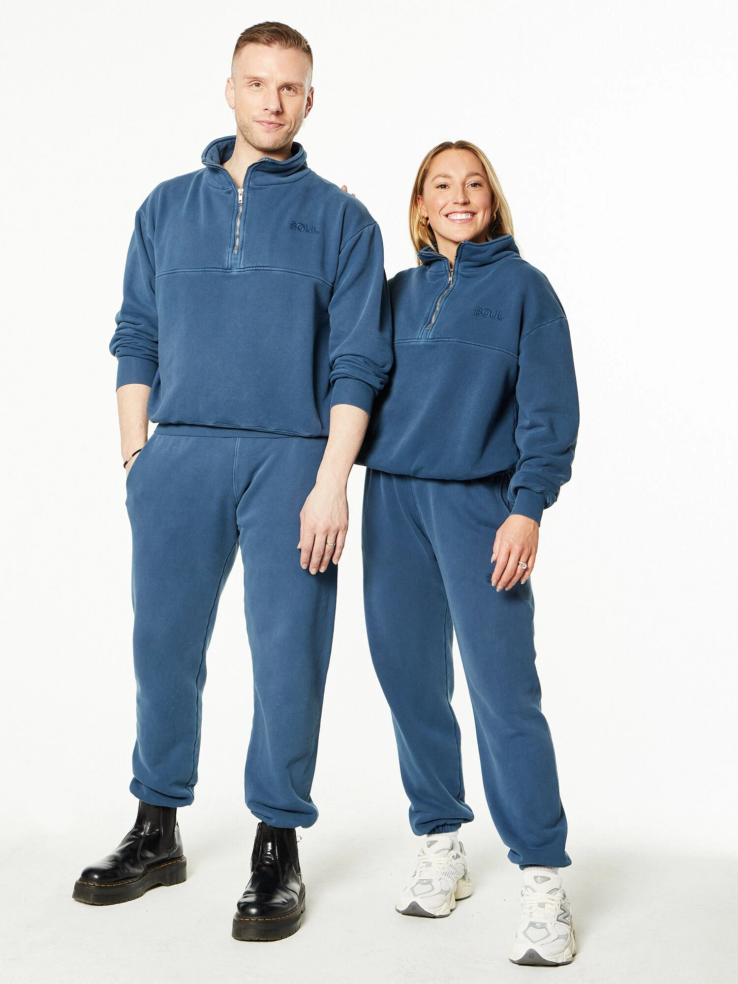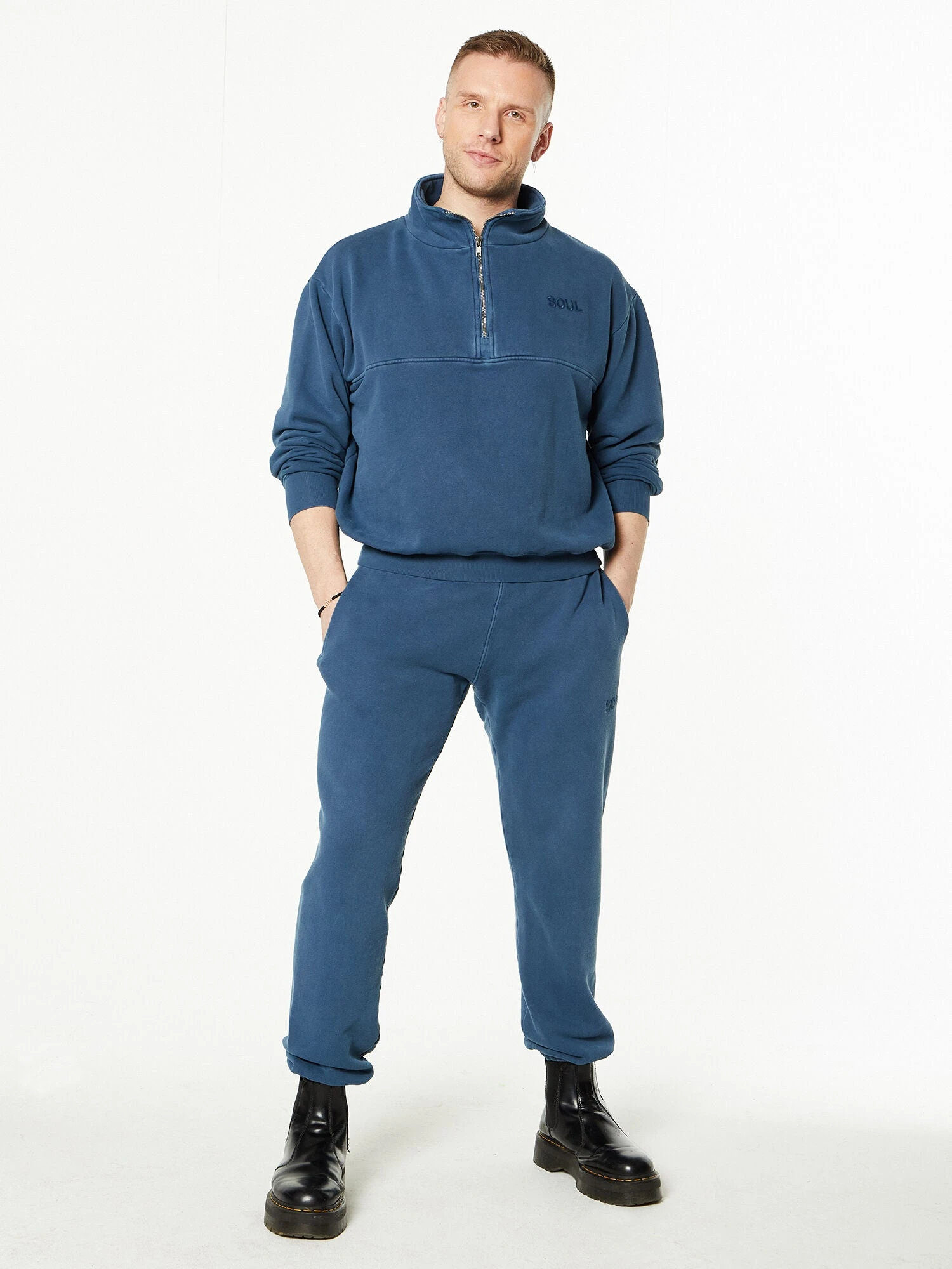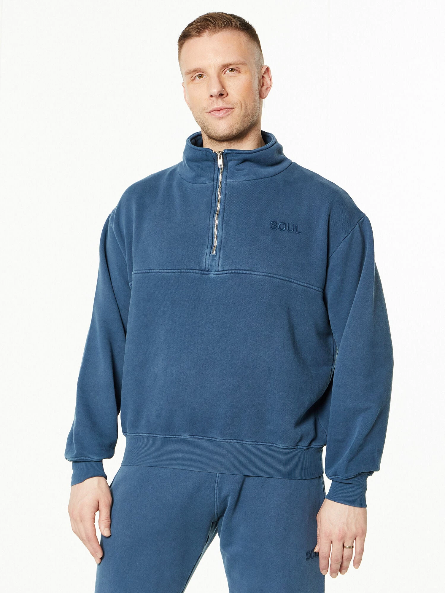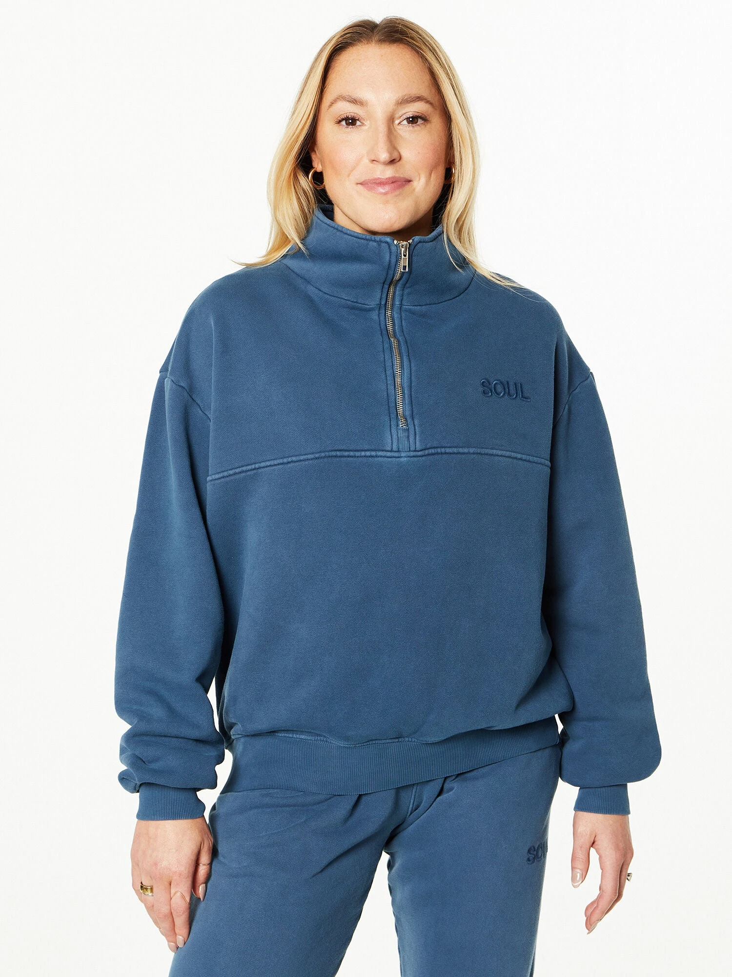 This collared, quarter-zip sweatshirt is perfect for throwing on after class or living in all weekend. Features embroidered “SOUL” on left chest. Made in Los Angeles.