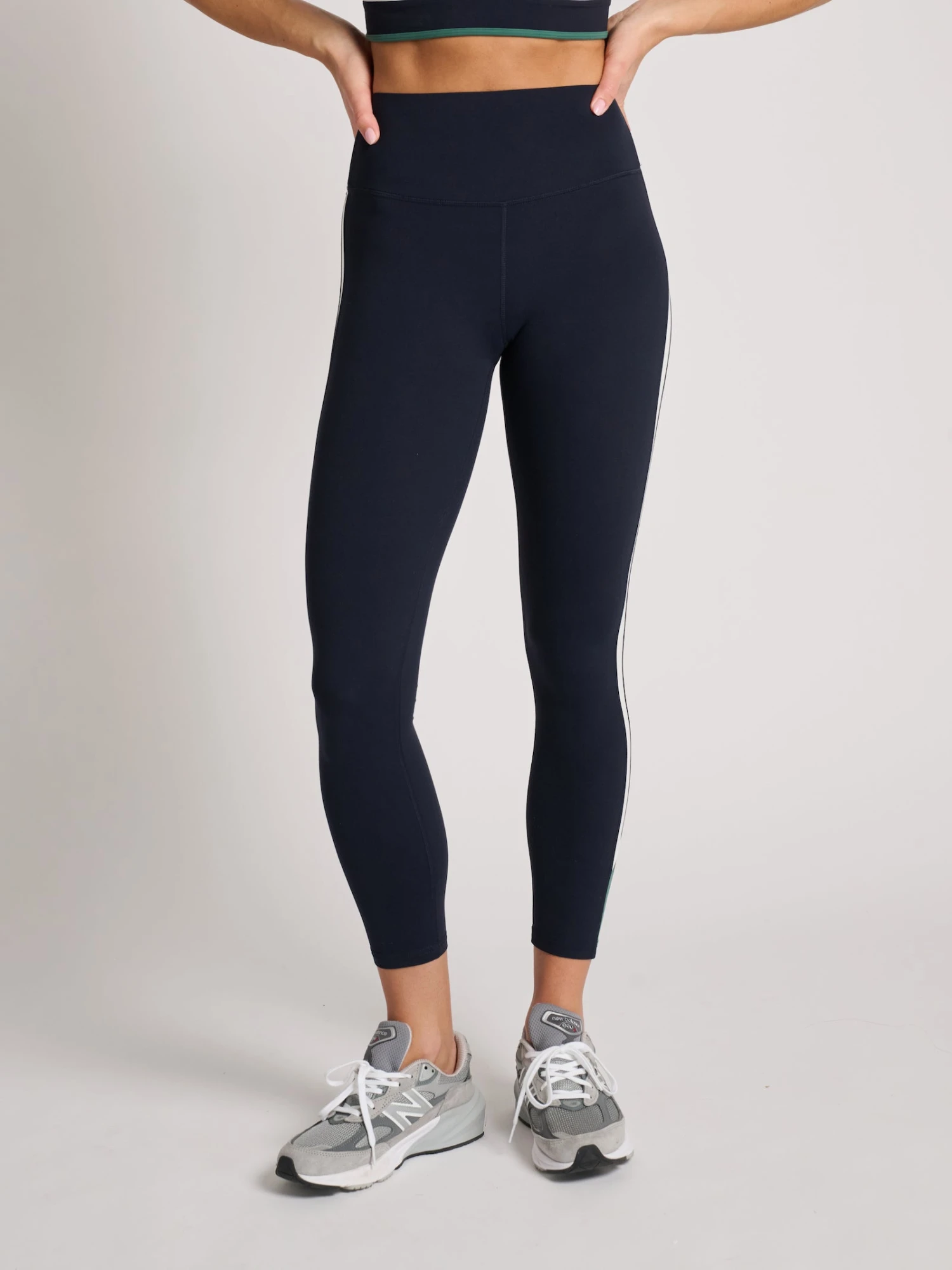The classic high waist Airweight legging updated with a contrast colored stripe detail. The ultra luxe Airweight fabric is buttery soft with second skin like comfort.
