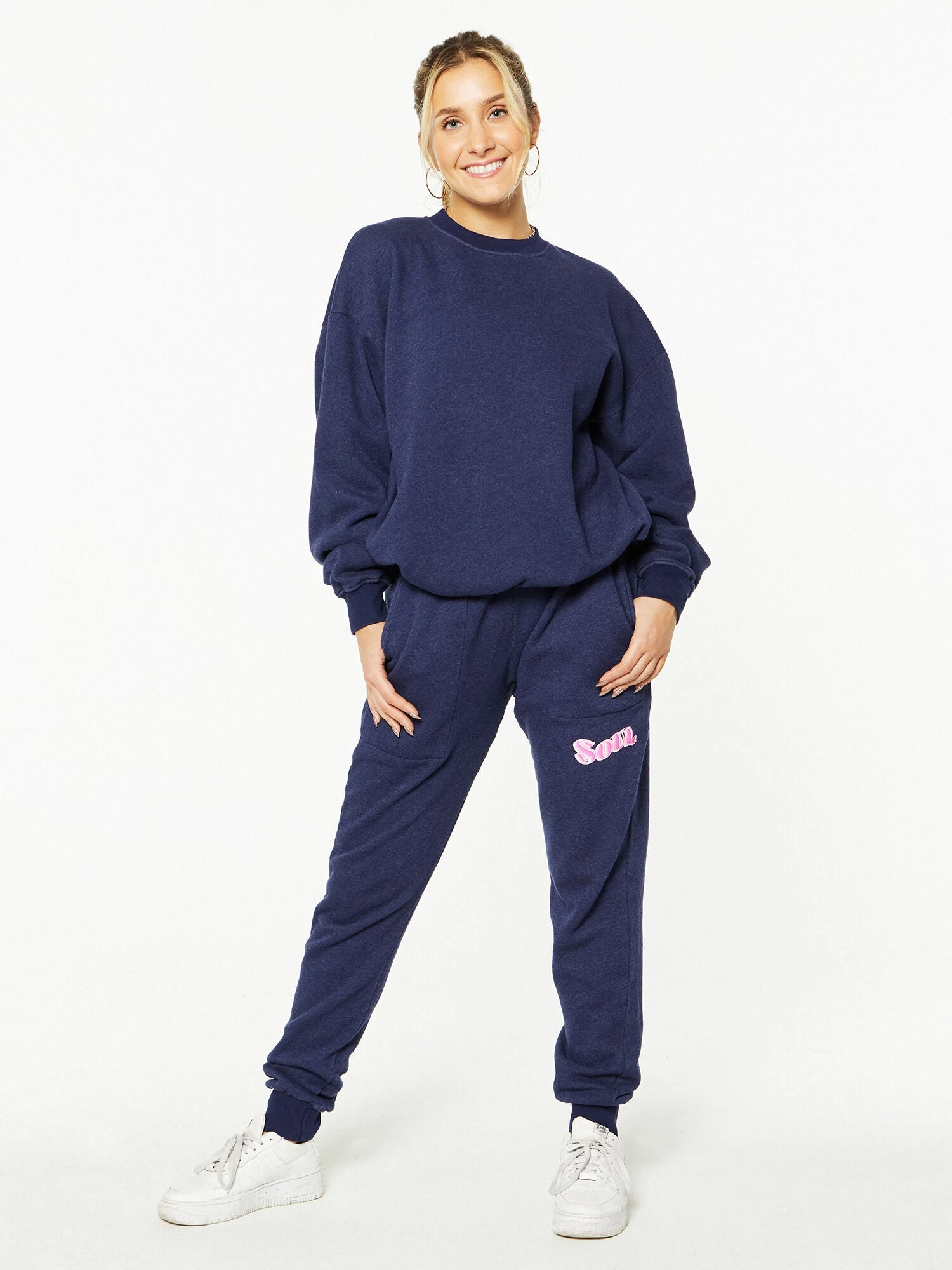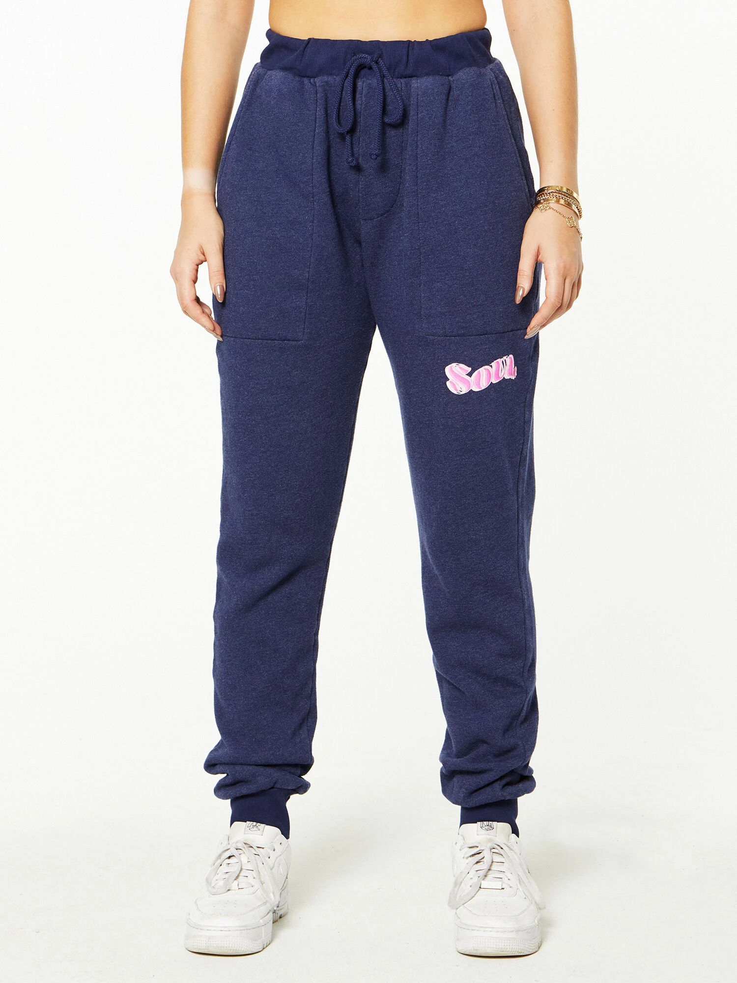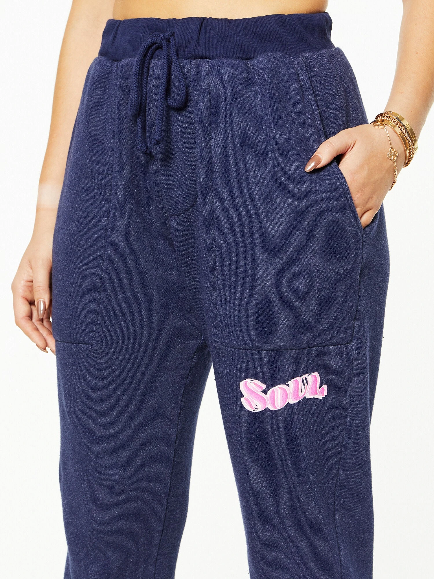 Up your loungewear game with this relaxed-fit jogger. Features a drawstring waist and pink “SOUL” on right hip.