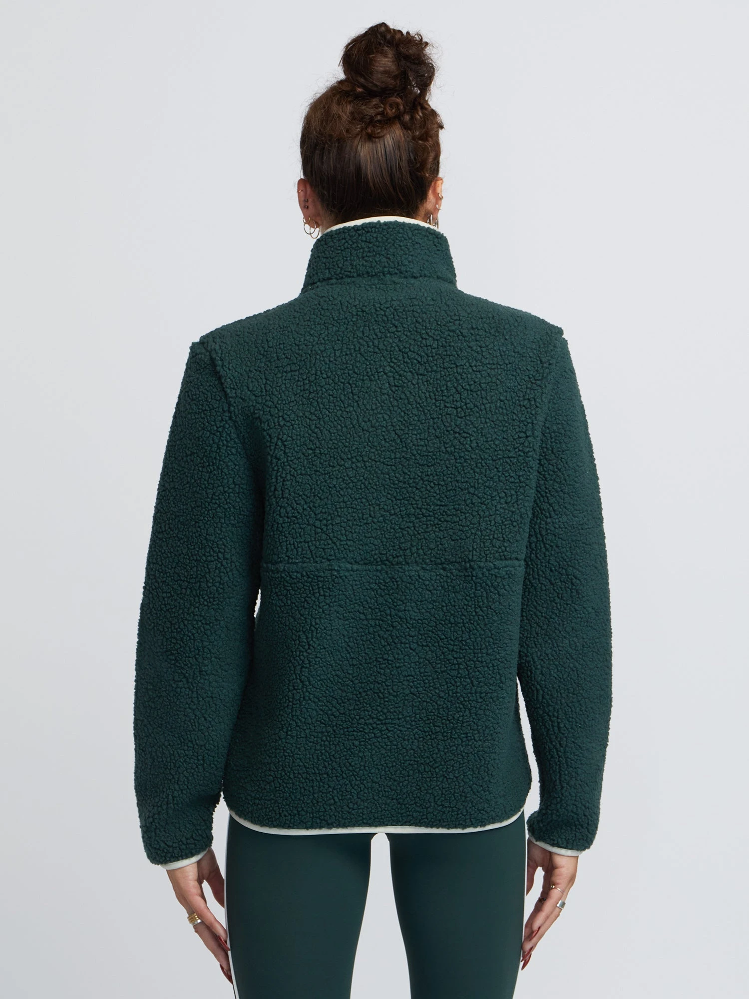 Allie from Boston wears the Libby Sherpa Half Zip.