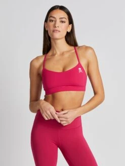 Flow into your next workout with this supersoft bra that fits like a second skin. Designed with light support, buttery-soft Nuluâ„¢ fabric, and breathable, four-way stretch for ultimate comfort. Features a small light pink skull on the left chest. No padding included.