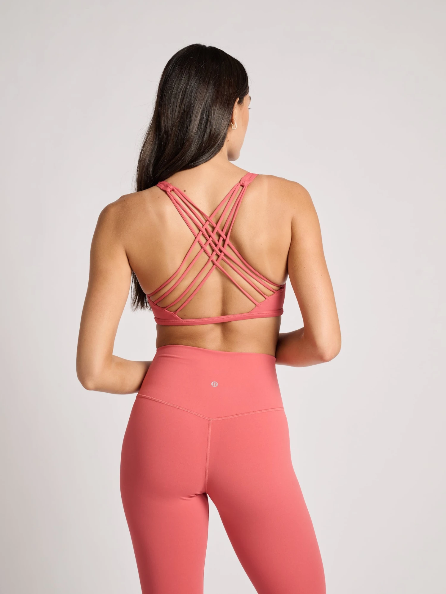 The Free to Be Bra offers light support with a sleek, sweat-wicking design. Made from breathable fabric with four-way stretch, it moves with you for ultimate comfort and flexibility during your workout. No padding included.
