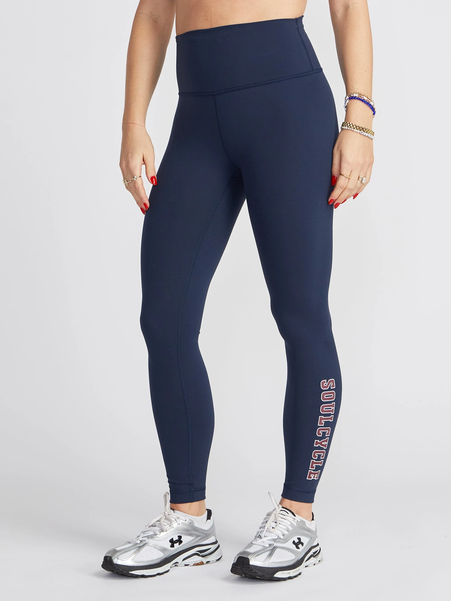 Lululemon’s sweat-wicking, breathable, high-rise Everluxâ„¢ leggings are designed to fit like a second skin, keeping you comfortable and distraction-free during your ride. They feature a maroon “SOULCYCLE” collegiate graphic down the left calf.