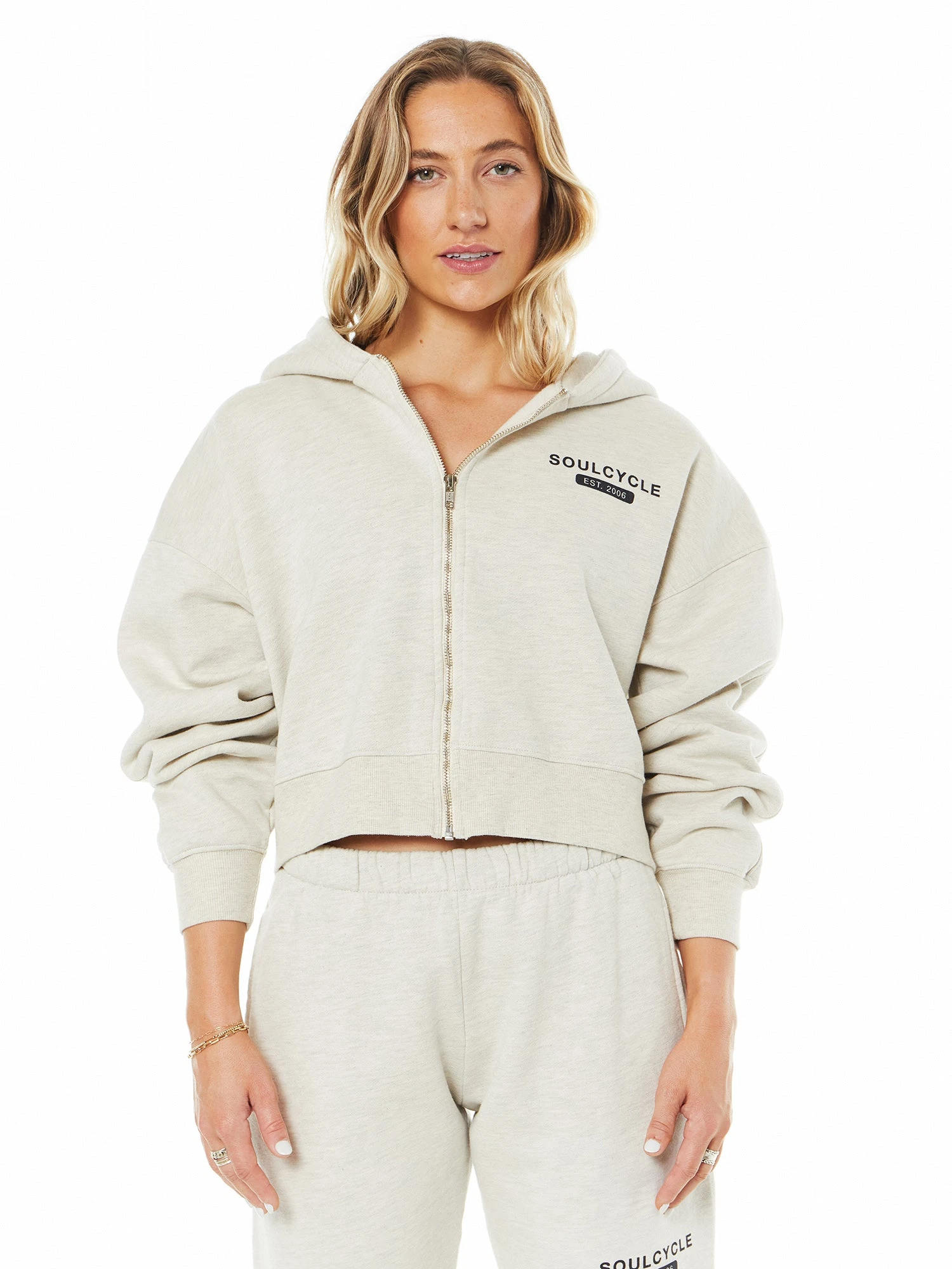 This oversized, cropped hoodie is so comfy you’ll never want to take it off. Designed with front zipper and roomy pockets to store all your valuable items. Features “SOULCYCLE EST 2006” on the left chest.