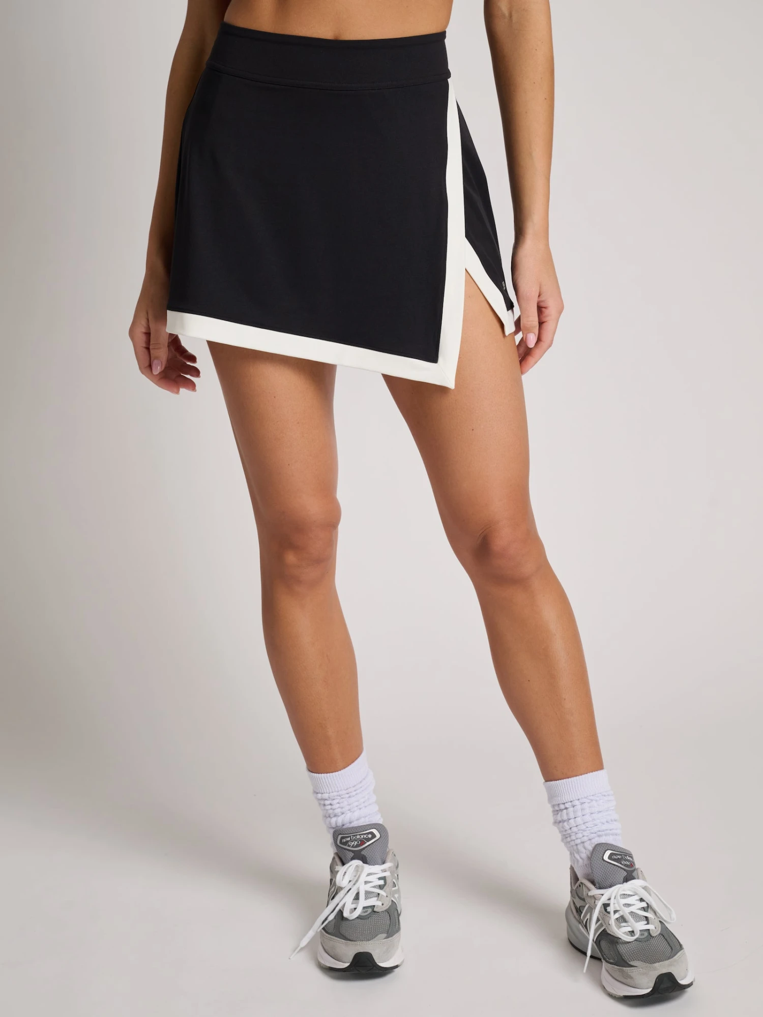 A split hem high rise skort in our high-performance Rigor fabric. The high-performance Rigor fabric is super soft with moisture wicking and quick dry super powers.