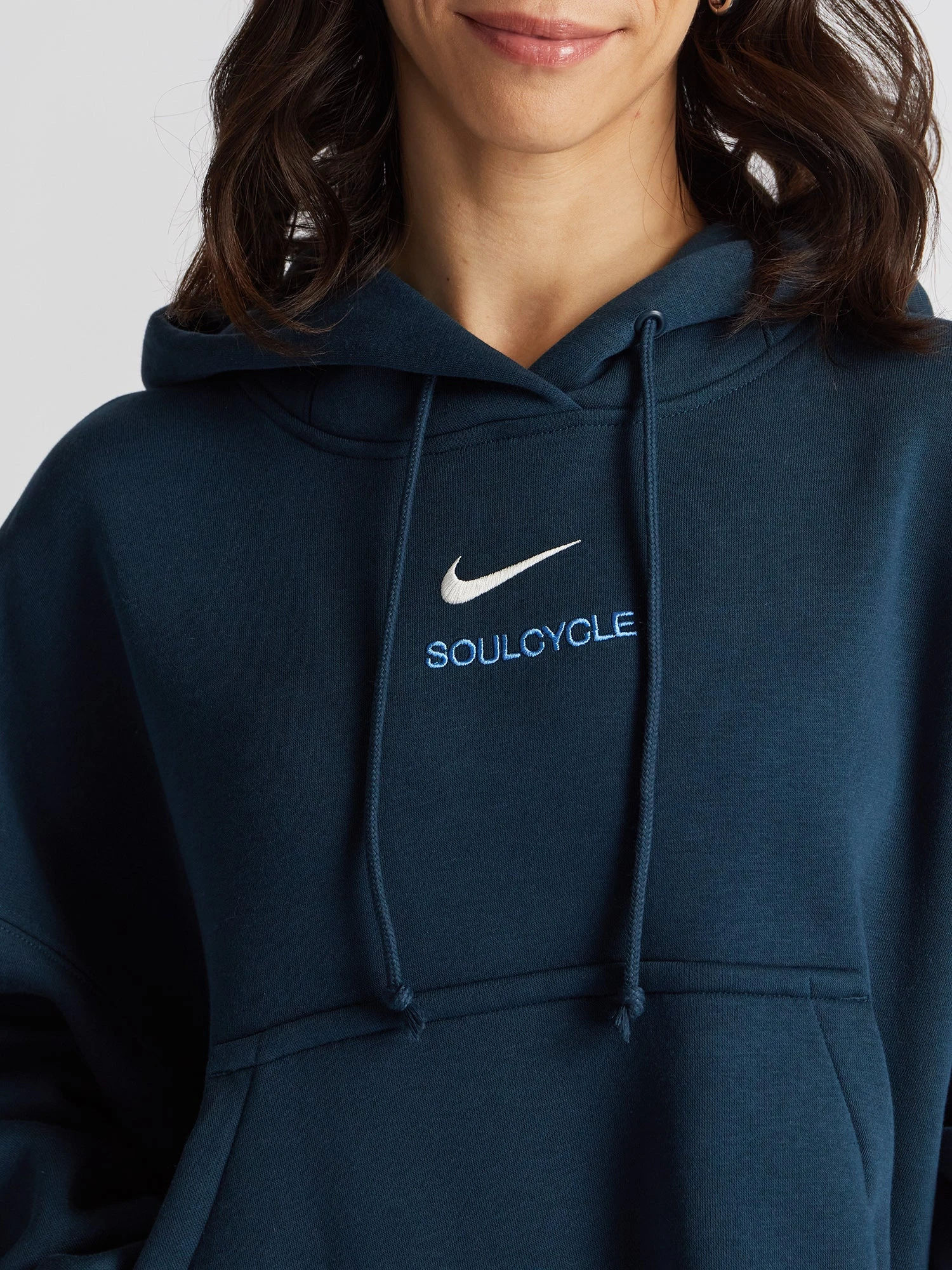 Make a statement in this supersized hoodie, crafted from luxe brushed fleece for ultimate comfort. The elongated ribbing at the cuffs and hem adds stylish structure, while ‘SOULCYCLE’ is embroidered on the front for a bold touch