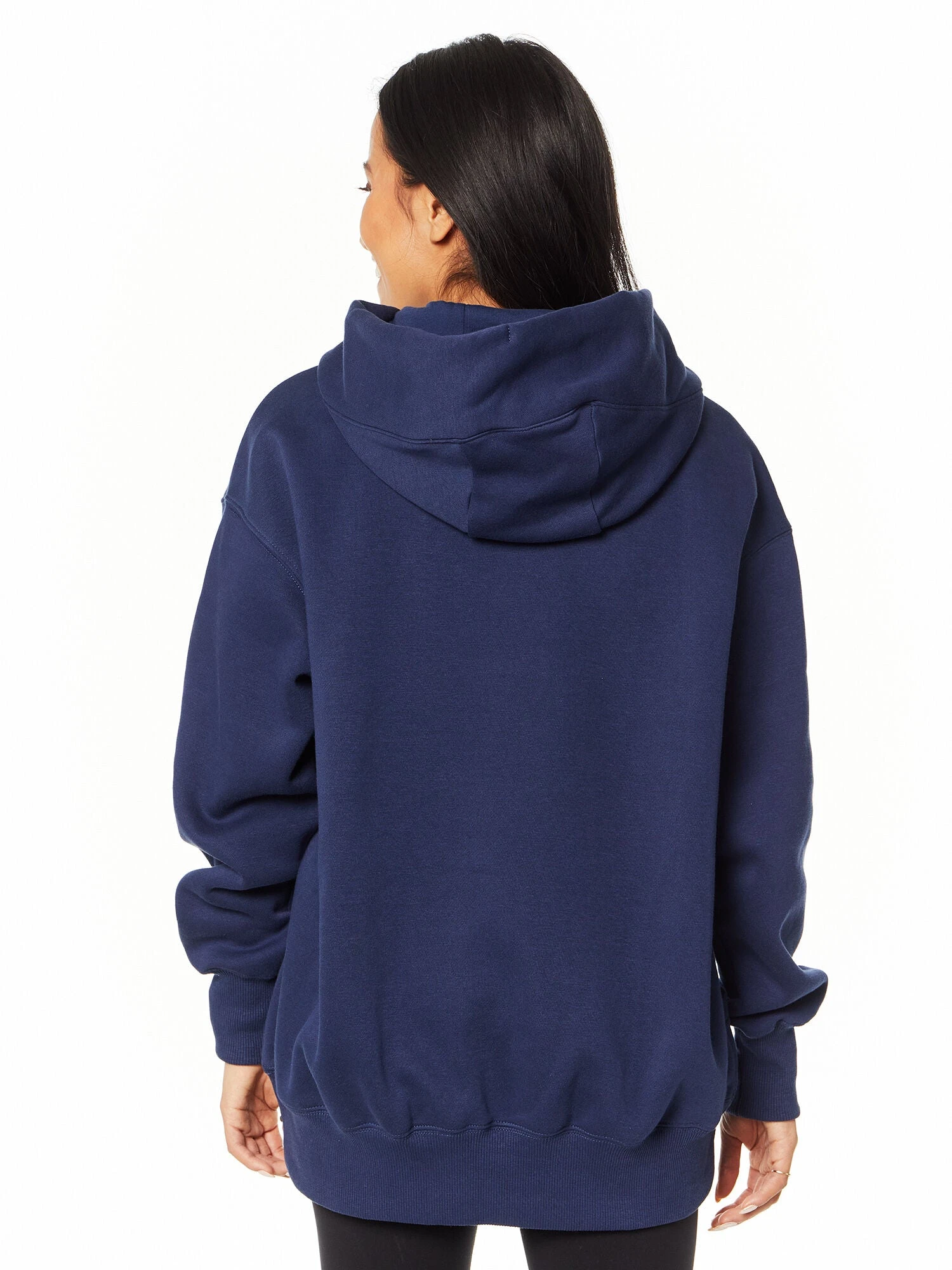 Bring on the cozy vibes in this fleecy, oversized hoodie. Designed with a roomy fit and a kangaroo pocket to store all your essentials, plus a drawstring cord for a perfect fit. Features “SOULCYCLE”in black on center chest.