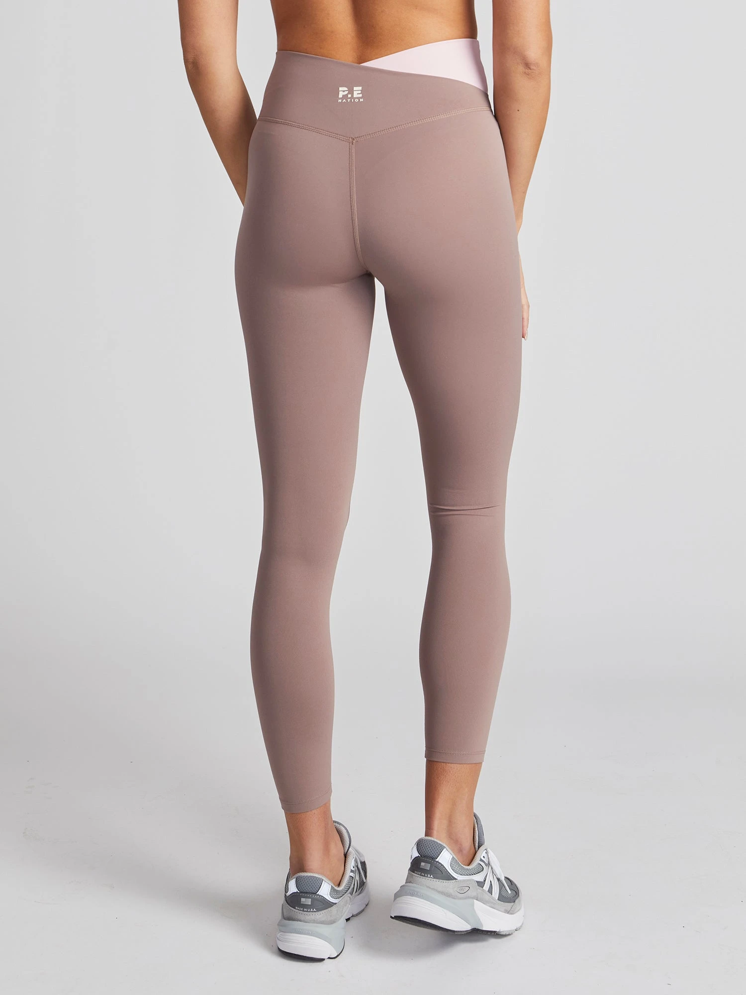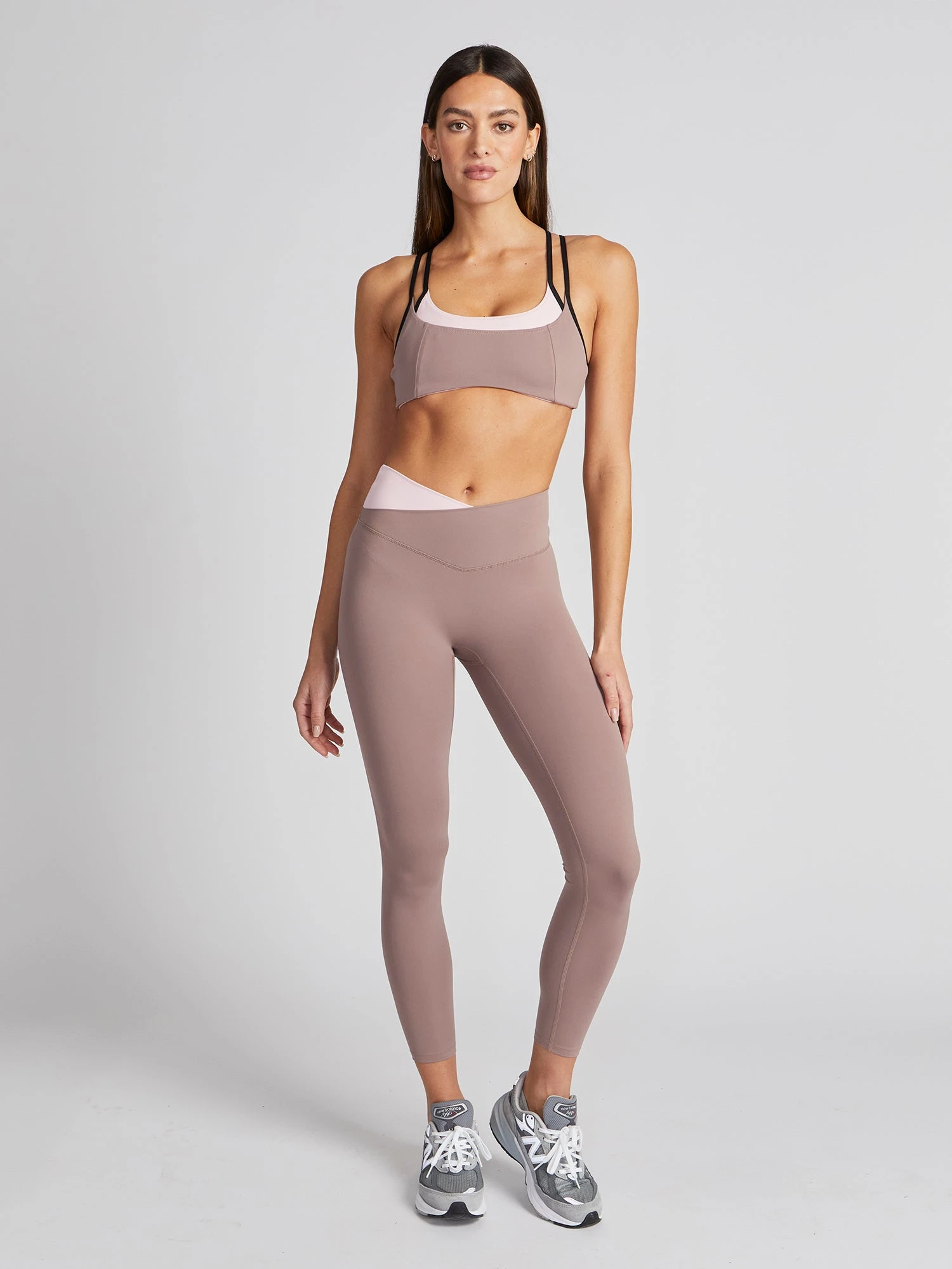 Made from the new Studio Soft fabrication—a lightly peached fabric with a matte finish—this high-rise, full-length legging features a contrast crossover detail at the waistband for a flattering fit.