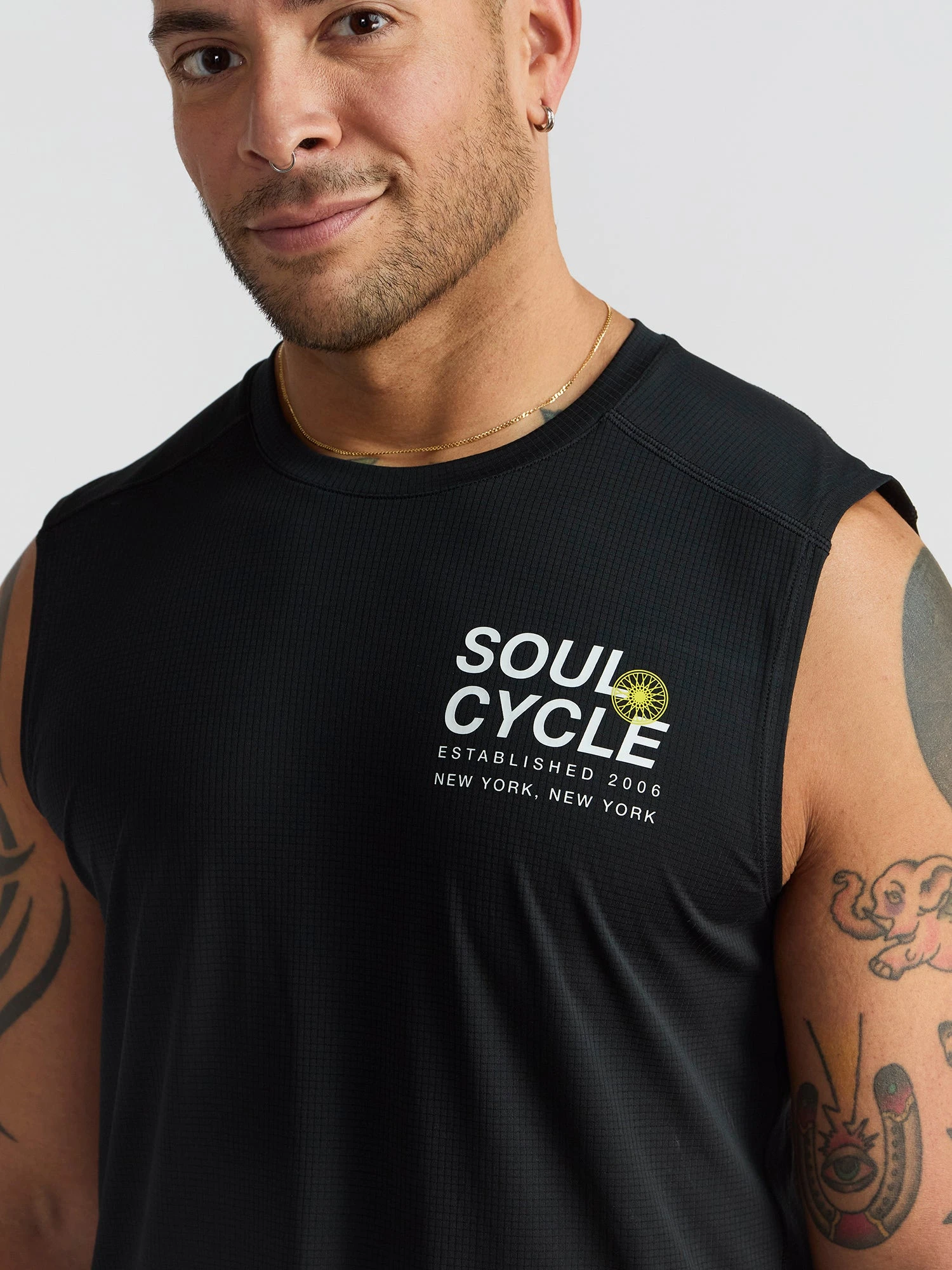 This tank performs ride after ride–just like you. Constructed from Polartec© Power dry© fabric to be highly breathable, lightweight, fast-drying, and odor resistant. Clothes that work as hard as you do. Features “SOULCYCLE” graphic with a wheel.