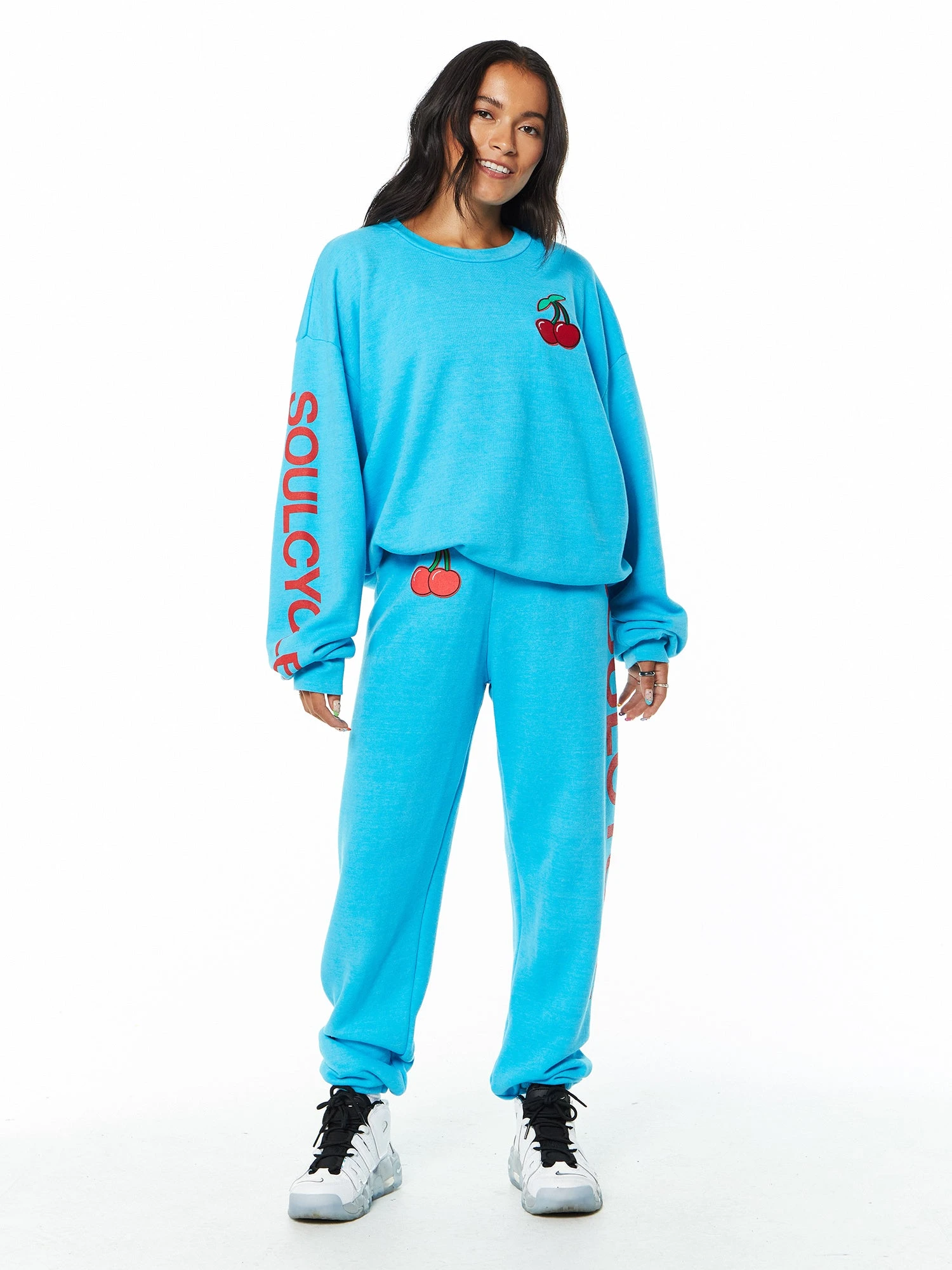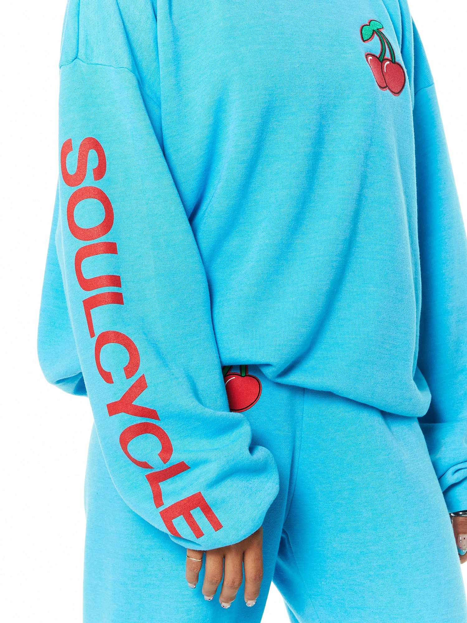 This classic vintage-inspired sweatshirt goes through a special break-down process to create the feel of lived-in softness from the first wear. Features red cherry patch at the left chest. Hand sewn using single needle stitch work. Made in L.A.