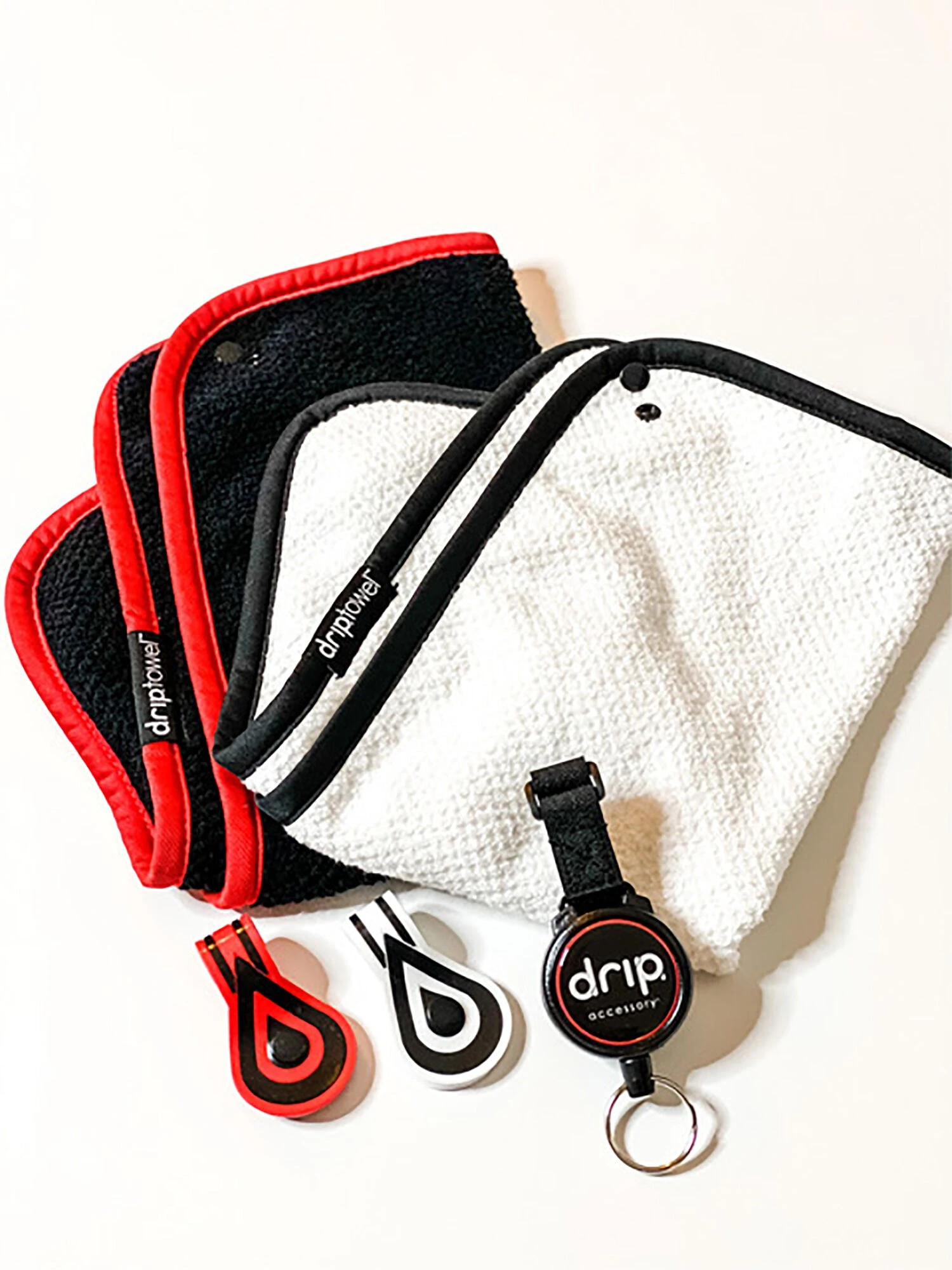 This set of two plush terry cotton sweat towels by Drip Accessory comes with two removable rubber clips and one retractable velcro reel. Attach anywhere and never have to worry about your towel again. Size: 19 in x 14 in.