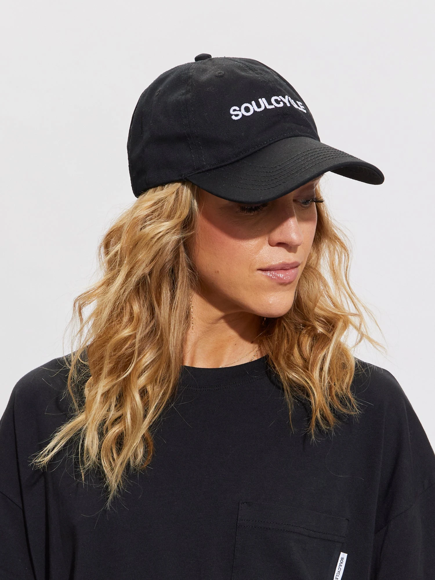 Our basic black baseball cap features “SOULCYCLE” in bold white lettering across the front.