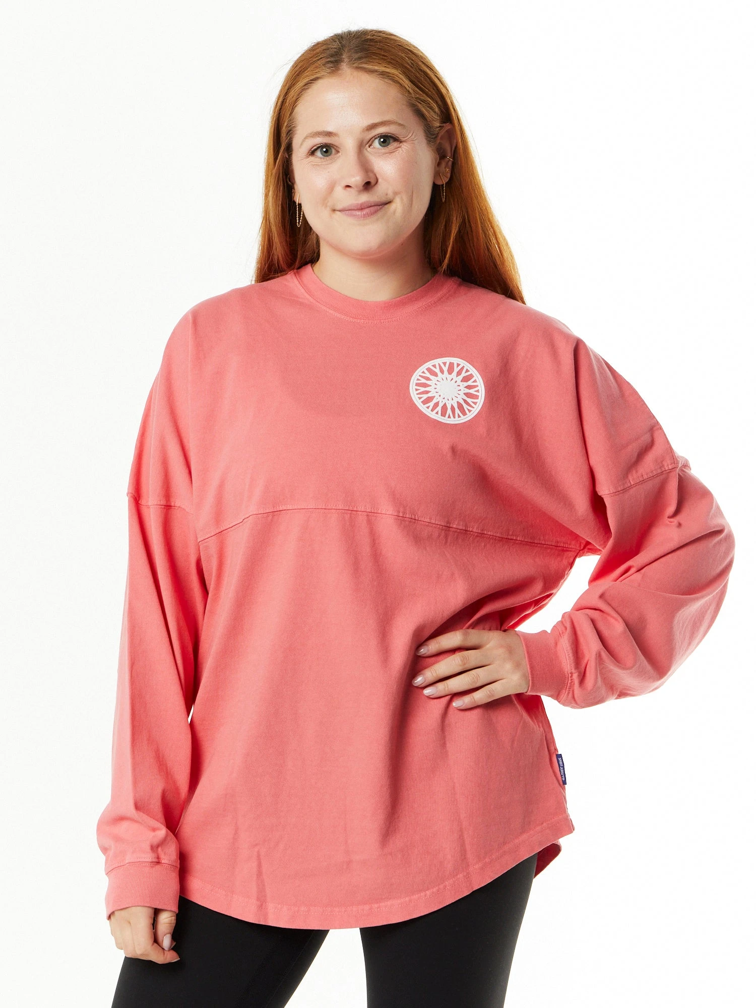 Show your SoulCycle spirit with our oversized, long-sleeve, Spirit Jersey. This casual, cozy style works perfectly for any occasion. Features white wheel on left chest, and ombre “SOULCYCLE Hamptons” across back.