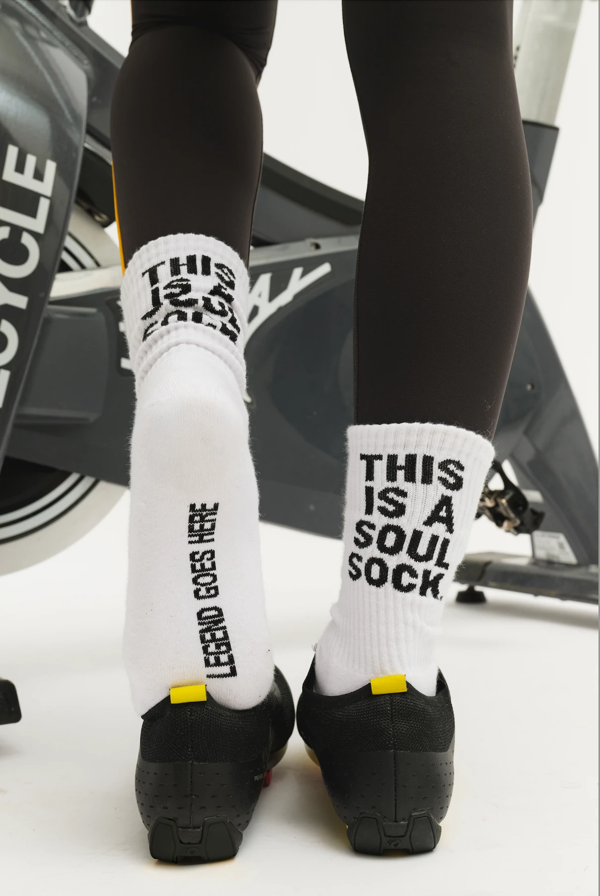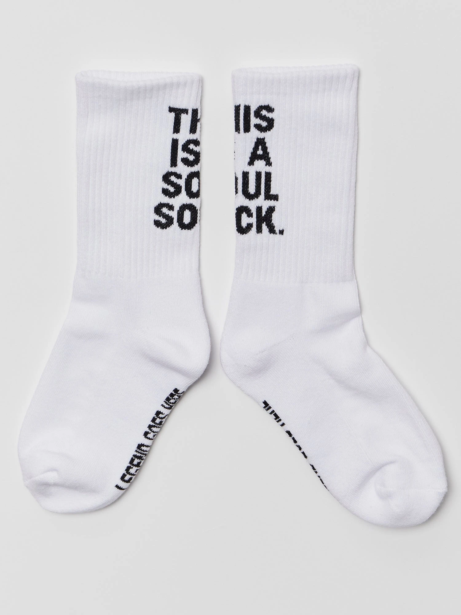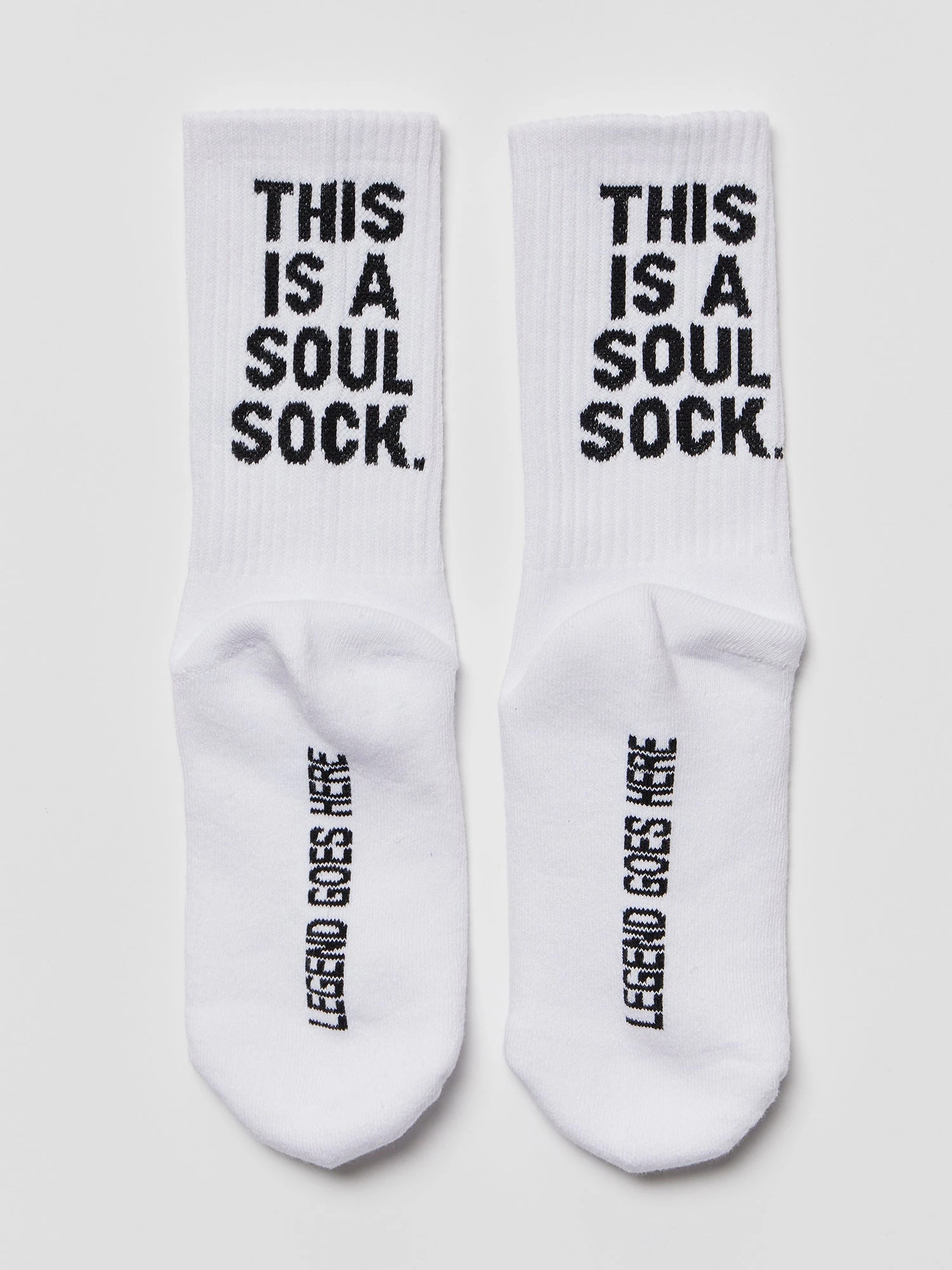 Our white crew sock features “THIS IS A SOUL SOCK” on the back and “LEGEND GOES HERE” on the sole.