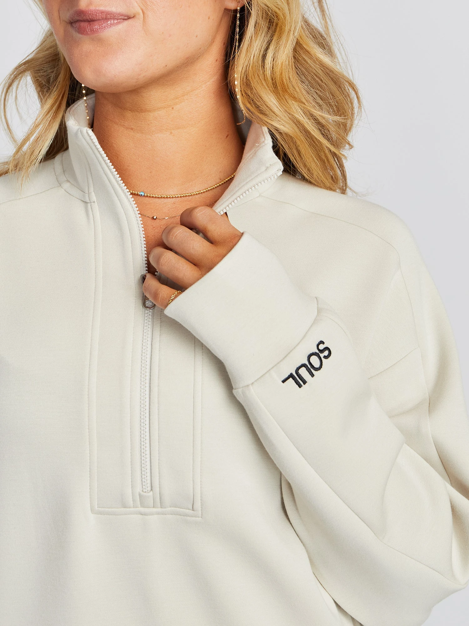Ava Nevad from New Jersey wears the Marissa Half Zip Midlayer.