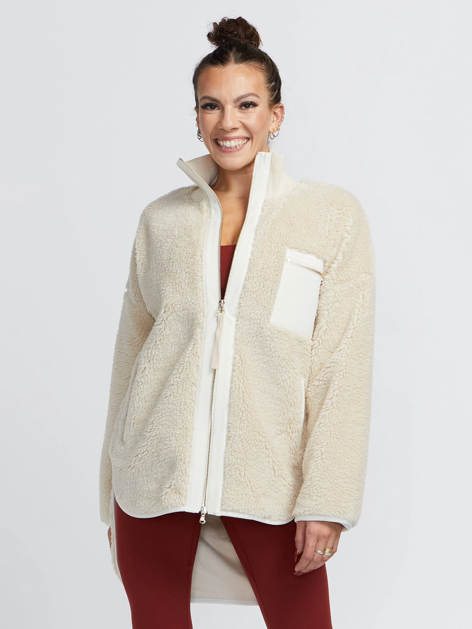 Effortless style meets peak performance in this plush Sherpa jacket. Designed with a chunky, ribbed neck and full lining for premium protection against the elements, it includes a deep, scooped back hem for added warmth and coverage. The double-ended zip allows for a customizable fit, making this jacket as functional as it is stylish.